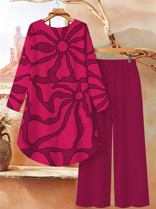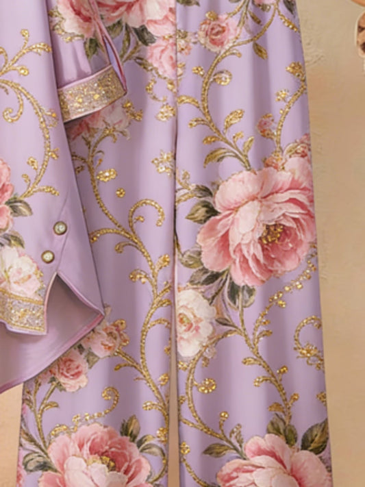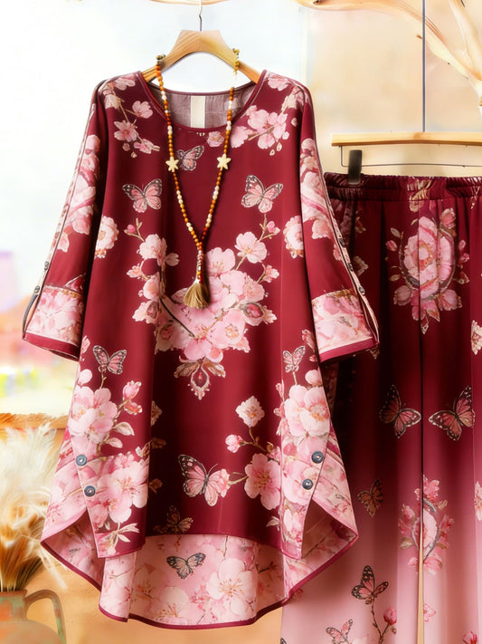 Elegant Botanical Print 2-Piece Women’s Co-Ord Set