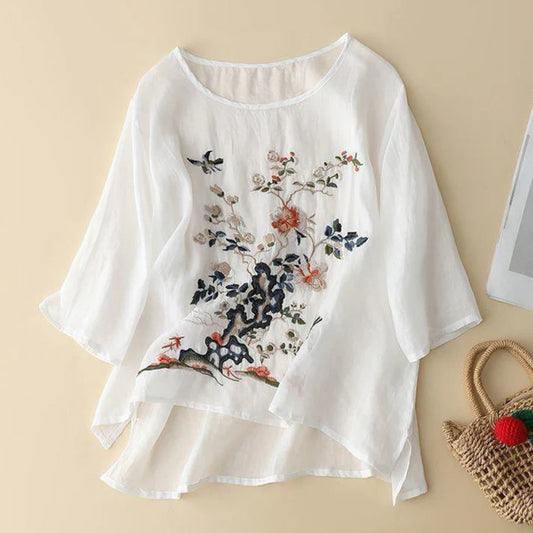 Women’s Boho Floral Embroidered Pure Cotton Tunic Top