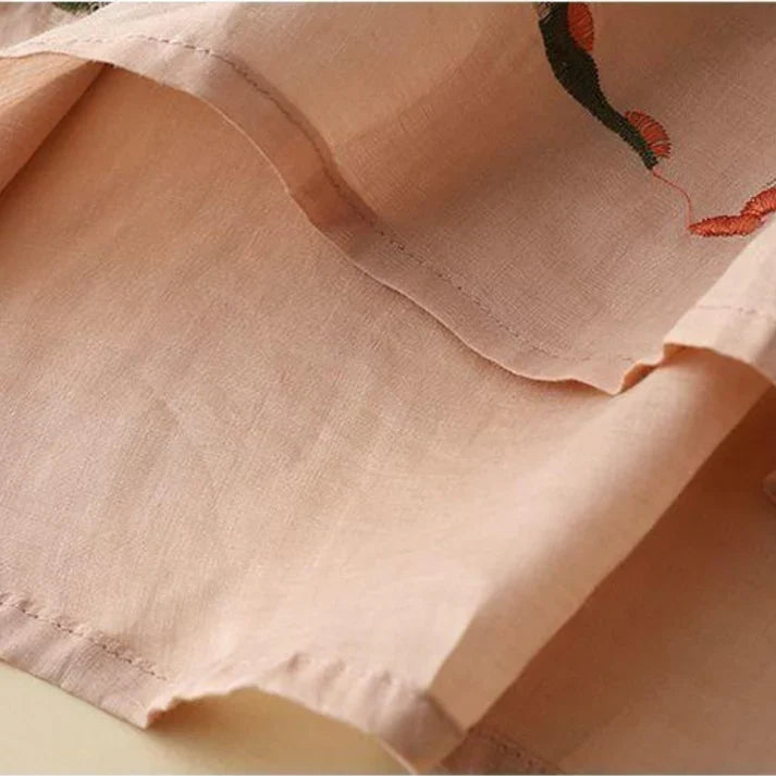 Women’s Boho Floral Embroidered Pure Cotton Tunic Top
